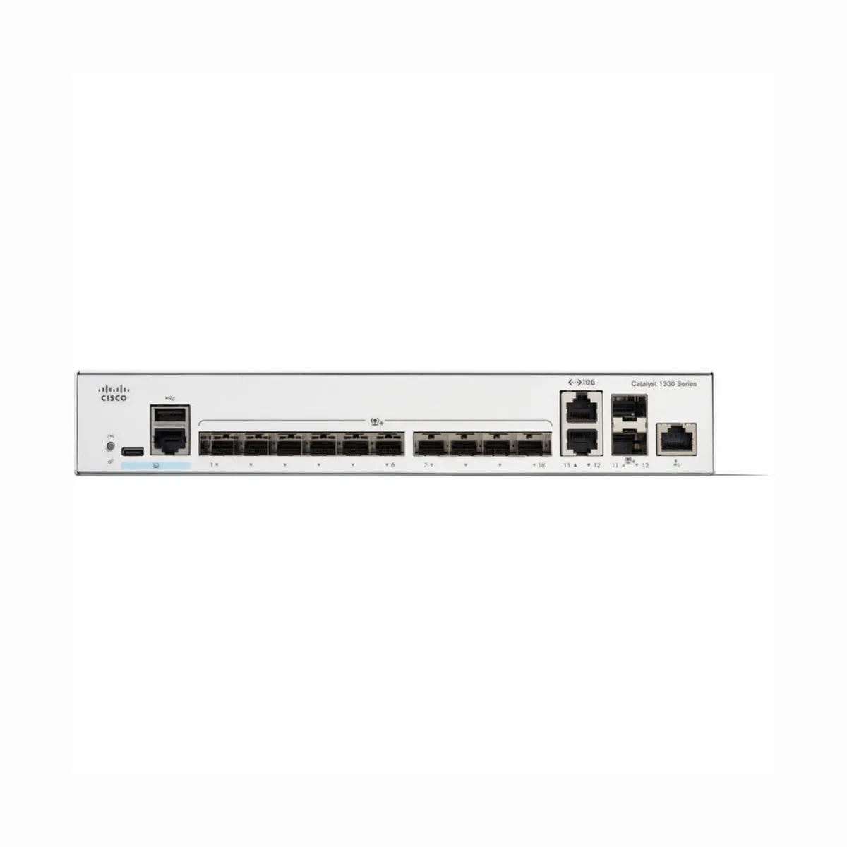 The Cisco / C1300-12XS / 10 x 10G SFP+ & 2 x 10G Combo & 1 x GE OOB Managed Switch is a genuine Cisco Catalyst 1300 Series enterprise-class Layer 3 managed switch built for high-speed aggregation, data centre access, and 10 Gigabit backbone deployments in small and medium-sized businesses, enterprise branch offices, retail stores, schools, and wiring closet environments. It features ten 10 Gbps SFP+ fibre slots alongside two RJ45/SFP+ combo ports for 10 Gbps copper or fibre links. FS.com Furthermore, a dedicated 1 x Gigabit Ethernet out-of-band (OOB) management port ensures administrators always maintain secure, independent access to the switch — completely separate from the production data network. The C1300-12XS delivers a switching capacity of 240 Gbps and a forwarding rate of 178.57 Mpps EdgeOptic, providing true non-blocking wire-speed performance across all 12 ports simultaneously. Managed through the Cisco Business Dashboard and Cisco Business mobile app, the switch provides a simple and reliable management experience HPE Store accessible from both desktop and mobile interfaces without requiring complex CLI expertise. Additionally, the Cisco Catalyst 1300 Series supports dual images, allowing software upgrades with minimal network downtime EdgeOptic — a critical capability for production environments where continuous availability is non-negotiable. Security stays comprehensive and enterprise-grade throughout. Advanced defence mechanisms including dynamic ARP inspection, IP Source Guard, and DHCP snooping detect and block deliberate network attacks. EdgeOptic Port security and IEEE 802.1X authentication tightly limit access to specific network segments. Consequently, the C1300-12XS protects business-critical traffic without requiring a separate security appliance. Moreover, the Catalyst 1300 Series runs on customised Linux OS software with an intuitive dashboard that simplifies network setup and advanced features that accelerate digital transformation. HPE Store The sleek and compact design provides additional deployment flexibility, including installation outside the wiring closet for sites such as retail stores, open-plan offices, and classrooms. EdgeOptic IPv4/IPv6 dual-stack support and full Layer 3 static routing future-proof the network for next-generation infrastructure demands. The internal power supply operates on AC 120/230V, with a maximum power consumption of 26.1W Optcore — exceptionally efficient for a 10G aggregation switch. Whether you are building a 10G server aggregation layer, upgrading a campus backbone, or deploying high-speed access for a demanding SMB network, the Cisco / C1300-12XS / 10 x 10G SFP+ & 2 x 10G Combo & 1 x GE OOB Managed Switch delivers the performance, security, and Cisco reliability your infrastructure demands. To check availability, check our stock. For full official specifications, visit the Cisco Catalyst 1300 Series official datasheet page.
